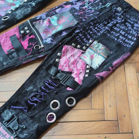 Custom punk patchwork pants MGK inspired - 2000s pop-punk and alternative rock stage aesthetics
